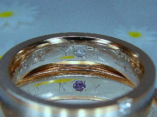 リング内側 イニシャル刻印 誕生石 ブルームーンストーン&アメジストリング幅 L 4.5mm M 5mm