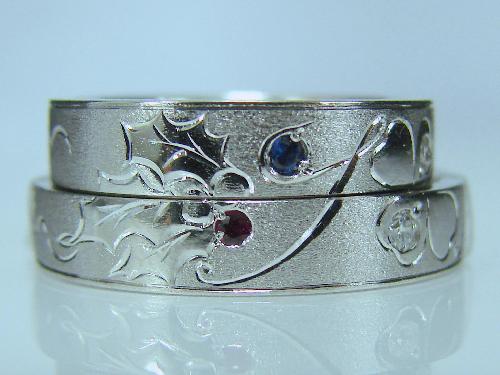 マリッジリング 重ねるとクローバー・イニシャルSM・ひいらぎエタニティー・ダイヤモンド・サファイヤ・ルビー・アクアマリン・グリーンガーネット