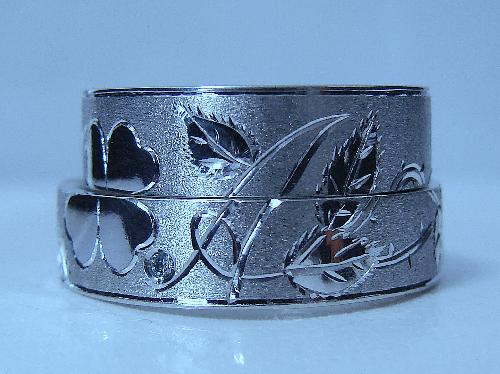 *幸福の象徴「クローバー」に「つるバラ」をエタニティー彫金しています。